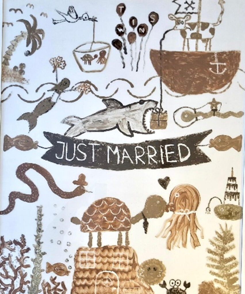 Die Quallen stehen dabei für das Treiben lassen und dabei, dass man nicht immer eine feste Richtung haben muss. Die organischen Formen verbinden alles miteinander und zeigen, dass Gegensätzen oft näher zusammengehören, als man denkt.