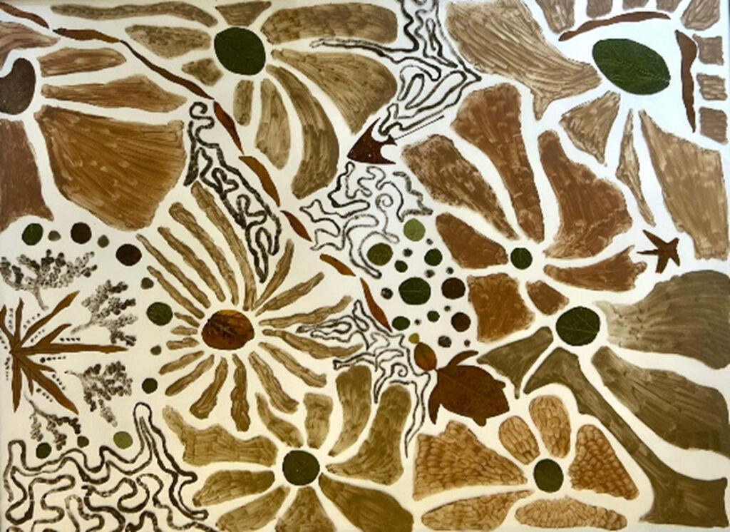 Diese Ausstellung lädt dazu ein, die Schönheit der Natur auf eine ganz besondere Weise zu entdecken. Im Sinne der Harmlosen Kunst werden ausschließlich bereits natürlich abgegebene Materialien verwendet. Dabei wird bewusst darauf verzichtet lebende Pflanzenteile aus der Natur aktiv zu entnehmen. Alle Kunstwerke wurden mit Erde und Laub gestaltet.