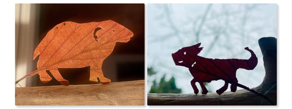 Die Zaubernuss hat sich im Herbst so leuchtend rot verfärbt, dass sogar mein Mann Lust bekam, ihre Blätter zu sammeln und zu pressen. Sie lassen sich jetzt wunderbar zu immer noch schön rötlichen zweidimensionalen Weihnachtskugeln schneiden und bereichern unser Fenster mit ihren zarten Farben und schweben im Luftzug.